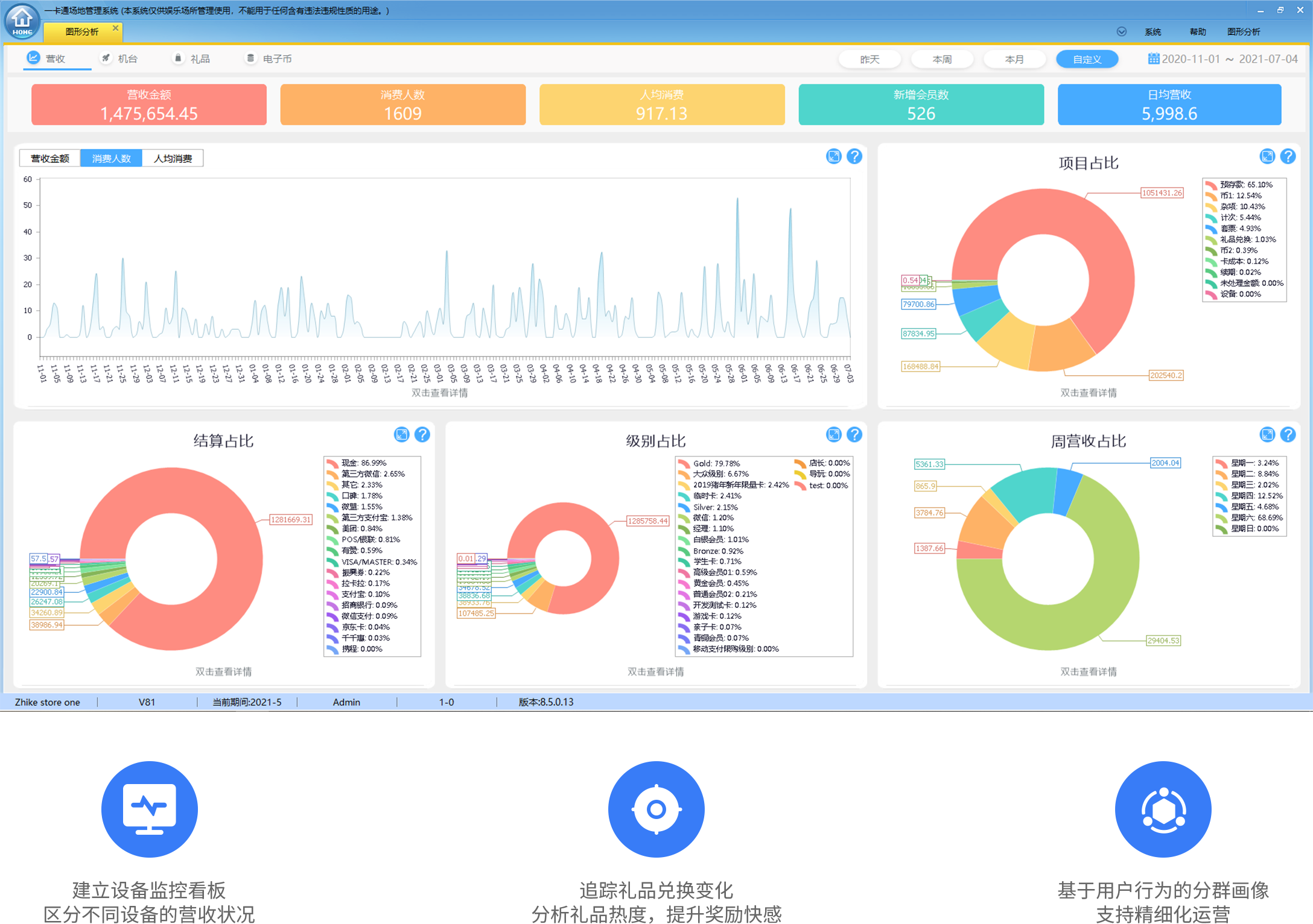 电玩城管理系统适用于游戏厅、电玩城等投币式娱乐场所,将传统的投币模式改为刷卡、扫码投币模式,无需游戏机进行复杂改造,只需连接投币器连接线即可替代投币方式,刷卡计费快速,设备维护故障少,消费数据统计简便。